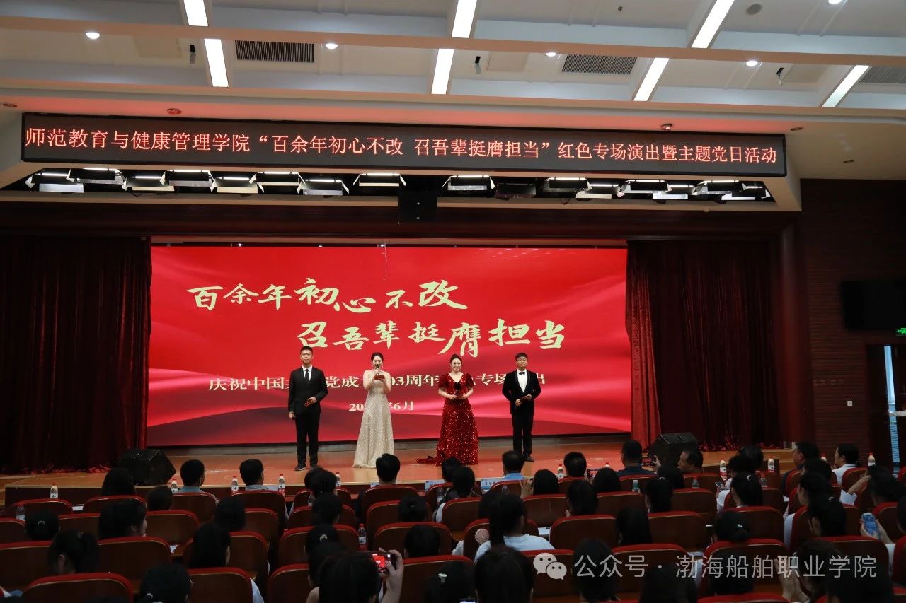 6月21日,師范教育與健康管理學院在學術報告廳開展“百余年初心不改 召吾輩挺膺擔當”慶祝中國共產(chǎn)黨成立103周年紅色專場演出暨主題黨日活動。學校黨委書記李榮軍、校長何滿輝、黨委副書記高俊東、副校長鄭海濤、副校長高云崇、組織部部長劉鵬翔、宣傳部部長牛國林、黨辦主任李輝,以及校團委、學生處、軍士與警士管理學院等相關部門負責同志與師范教育與健康管理學院的師生共同參加了活動。
