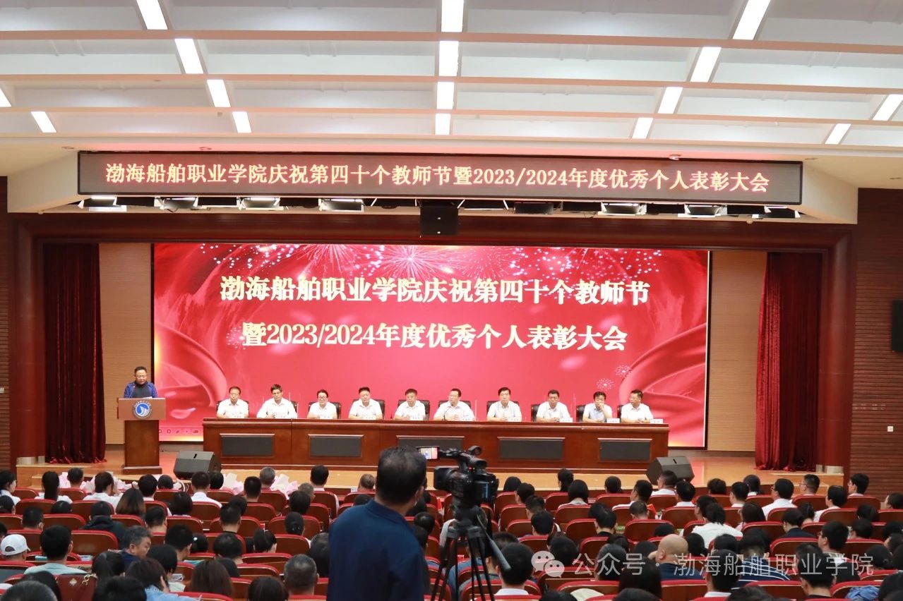 9月10日,渤海船舶職業(yè)學(xué)院慶祝第四十個教師節(jié)暨2023/2024學(xué)年度優(yōu)秀個人表彰大會在學(xué)術(shù)報告廳舉行。全體校領(lǐng)導(dǎo)、黨委委員、校務(wù)委員會專職委員、總會計師、全體中層干部、學(xué)校年度優(yōu)秀個人和各單位教師代表歡聚一堂,熱烈慶祝第四十個教師節(jié)。大會表彰了2023/2024學(xué)年度優(yōu)秀個人,為從教四十年老教師頒發(fā)紀(jì)念章。