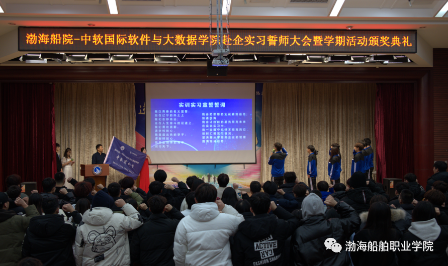 12月28日,信息工程系在學(xué)術(shù)報(bào)告廳舉行渤海船院—中軟國際軟件與大數(shù)據(jù)學(xué)院赴企實(shí)習(xí)誓師大會(huì)。