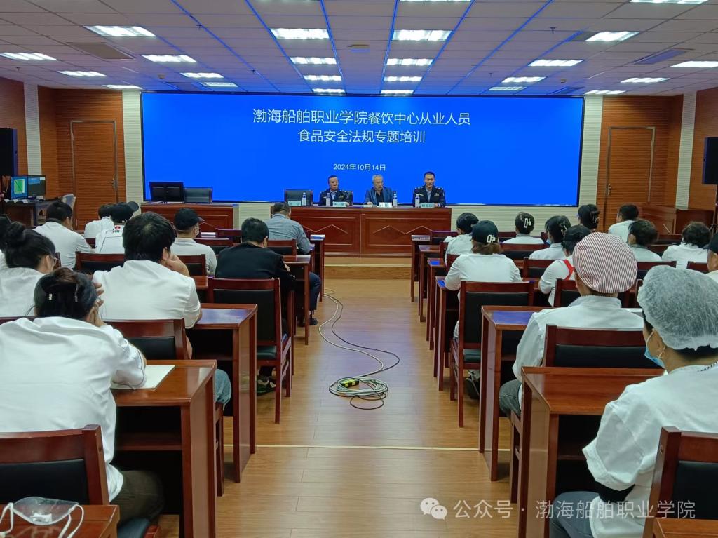 為切實履行校園食品安全主體責任,10月14日,學校餐飲中心組織開展餐飲從業(yè)人員食品安全法規(guī)專題培訓,興城市市場監(jiān)督管理局大隊長周軍、副隊長杜振國、中隊長張寧,我校餐飲中心主任秦如明出席培訓會議,餐飲中心、各食堂從業(yè)人員共計92人參加此次培訓。